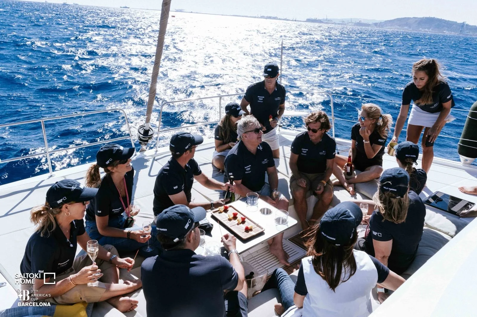 The OBM team that made it happen. Smiles, coordination, and warm welcomes aboard the Dortoka—home base for elite viewing during the 37th America’s Cup.